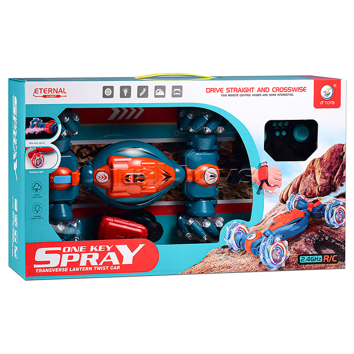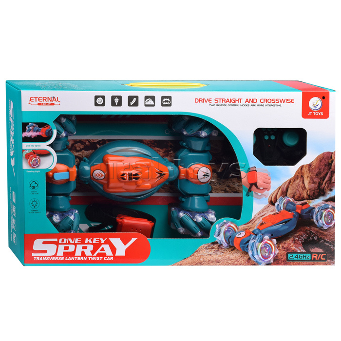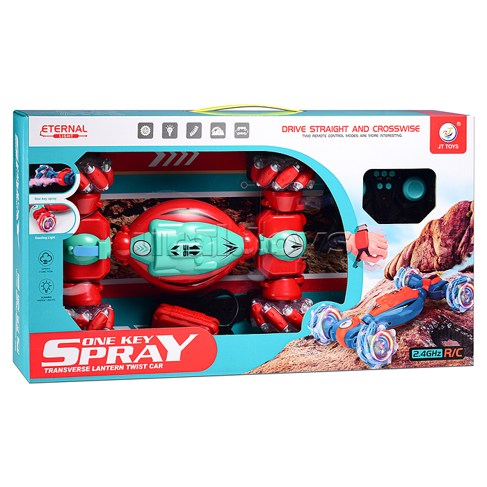 • Размеры игрушки: 28х19х7 см. • Машина работает от аккумулятора 3.7V 900mAh (входит в комплект) • Пульт управления работает от 2-х батареек "АА" (не входят в комплект) • В комплекте USB-шнур для подзарядки. • Можно управлять при помощи браслета (работает от 1 батарейки "CR2032"). • Функции: - движение вперёд, назад, вправо, влево. - вращение на 360 градусов. - яркая подсветка колёс. - пар из сопла (при наличии воды). - трансформация из гоночной во внедорожную. • Размеры внедорожной машины: 26х19х10 см. • Материал: пластик. • Соответствует требованиям безопасности продукции. • Для детей от 6 лет.