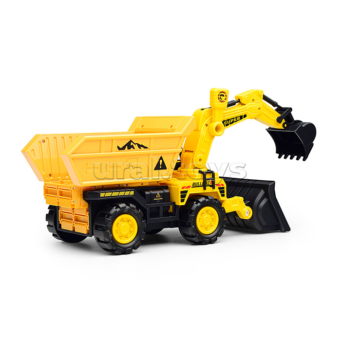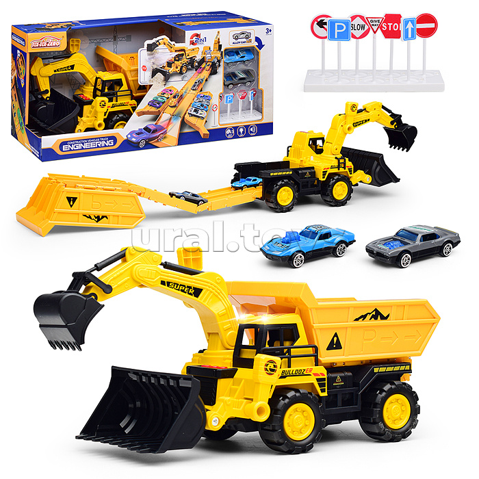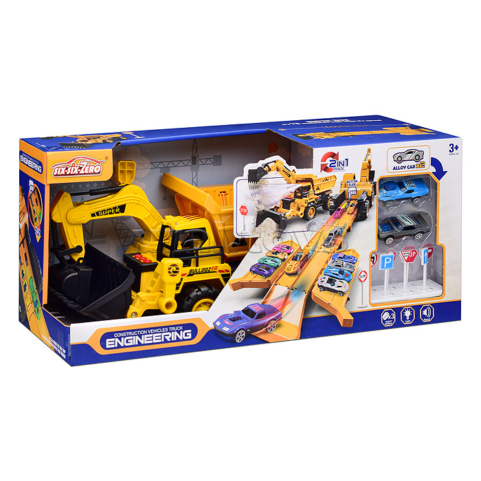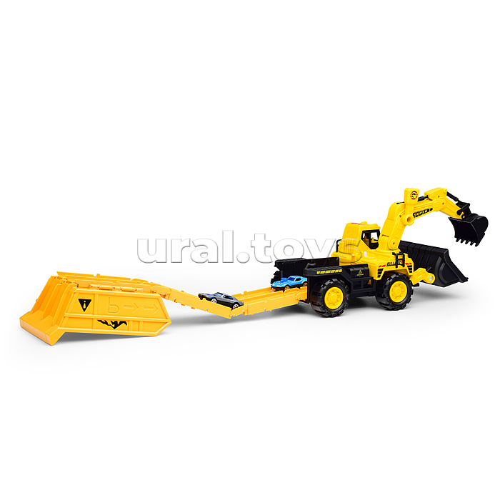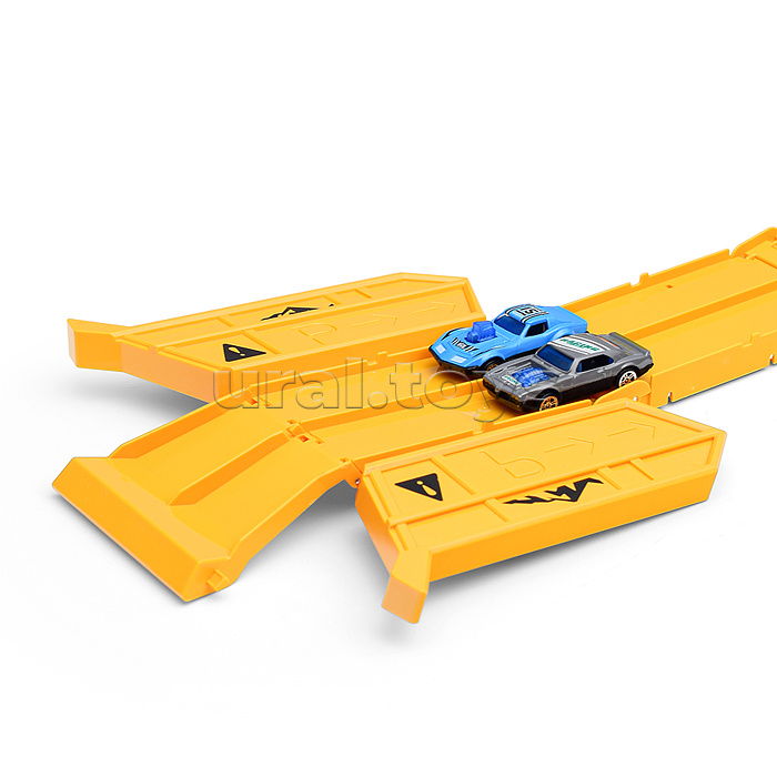 Код: 491183 Штрихкод: 6904111946025 Страна производитель: Китай Размеры упаковки: 49.5 x 70 x 21 см Количество в коробке: 8 • Размеры игрушки: 33х14.5х15.5 см. • Свободный ход колёс. • Кузов раскладывается в гоночную трассу с 2-я катапультами. • Протяжённость трассы 50 см. • 3 кнопки на корпусе (звук мотора, клаксон, 2 мелодии, мигание фар) • Свет и звук работают от 3-х батареек "AG13" (входят в комплект) • Материал: пластик. • В комплекте 2 машинки с металлическим кузовом (7х3х2 см.) • Соответствует требованиям безопасности продукции. • Для детей от 3-х лет. Комментарии к товару