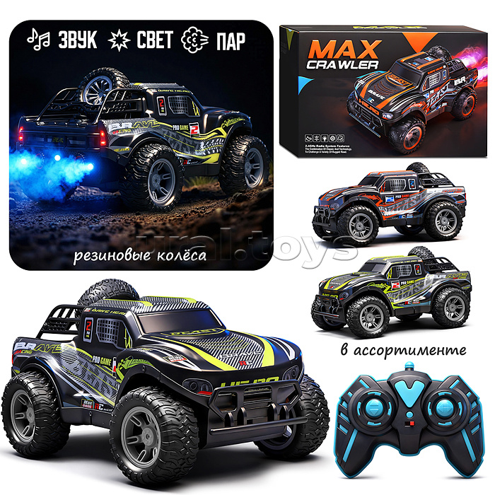 • Размеры игрушки: 25×15.5×13 см. • Машина работает от аккумулятора «3.7V 500 mAh» (входит в комплект) • Пульт управления работает от 2-х батареек «АА» (не входят в комплект). • В комплекте USB-шнур для подзарядки аккумулятора. • Функции: — движение вперед, назад, вправо, влево. — подсветка корпуса. — холодный пар из сопла (при наличии воды в резервуаре) — звук двигателя (отключается) • Материал: пластик. • Соответствует требованиям безопасности продукции. • Для детей от 3-х лет.