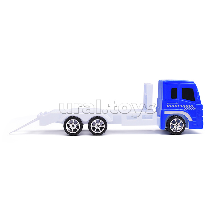 Код: 512169 Штрихкод: 4630395015578 Страна производитель: Китай Размеры упаковки: 30.5 x 11.5 x 14.5 см Количество в коробке: 24 • В наборе: - автовоз с инерционным механизмом (21.5х6х7 см.) - трактор (7.5х5.5х5.5 см.) • Материал автовоза: пластик. • Материалы трактора: пластик, металл. • Соответствует требованиям безопасности и качества продукции. • Для детей от 3-х лет. Комментарии к товару