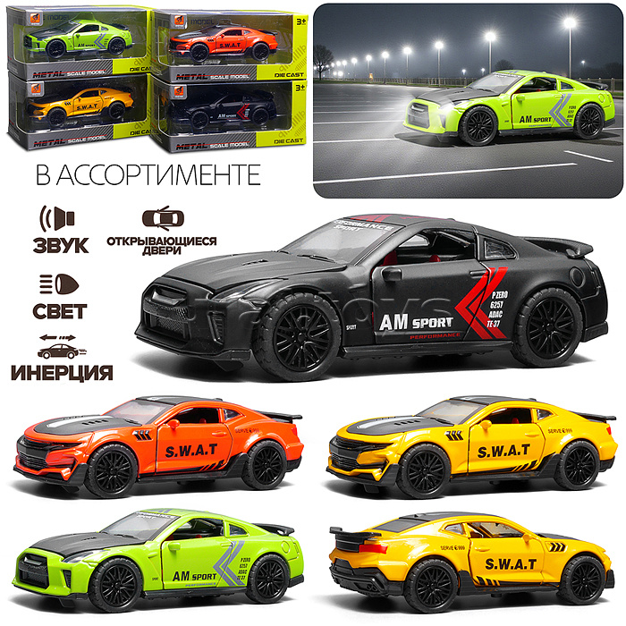 Код: 505507 Штрихкод: 6904112218060 Страна производитель: Китай Размеры упаковки: 6.5 x 15.5 x 7 см Количество в коробке: 120 • Размеры машины: 12×5х3.5 см. • Инерционный механизм движения. • Открывающиеся передние двери и багажник. • При нажатии на корпус звучит мотор и светят фары. • Свет и звук работает от 3-х батареек «LR41» (входят в комплект для демонстрации). • Металлический кузов. • Пластиковая подвеска. • Колёса с резиновыми покрышками. • Соответствует требованиям безопасности продукции. • Для детей от 3-х лет. Комментарии к товару
