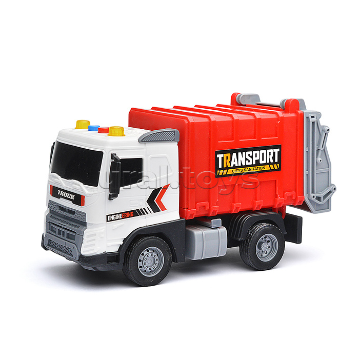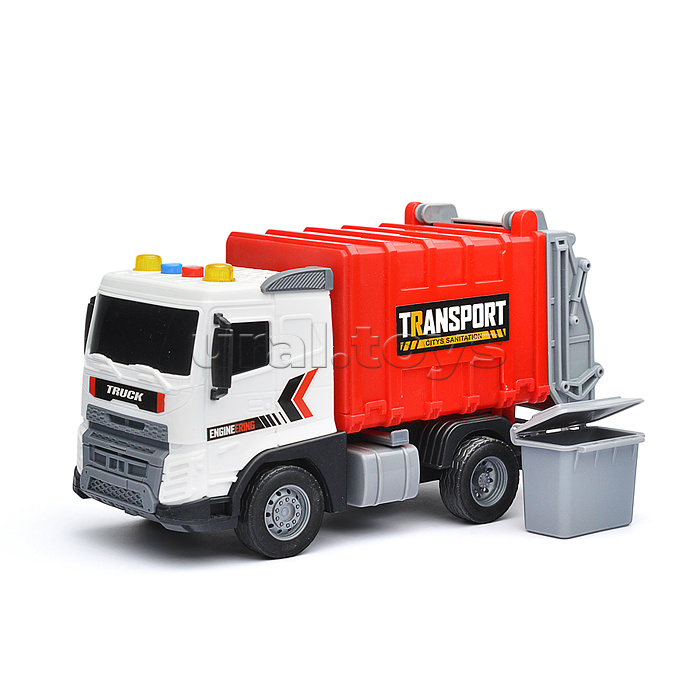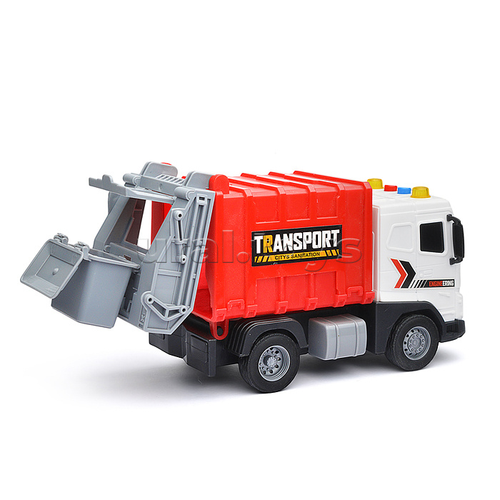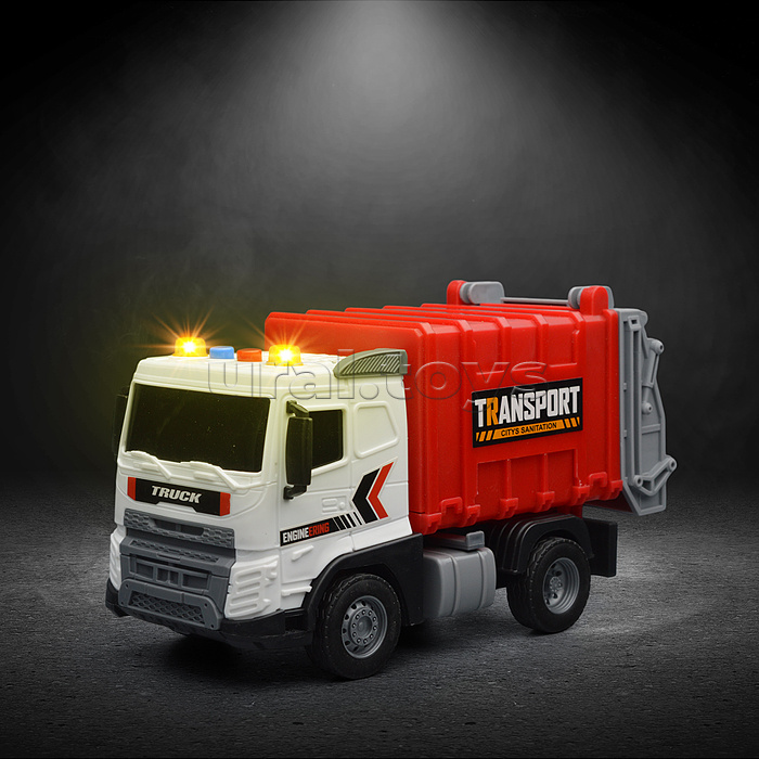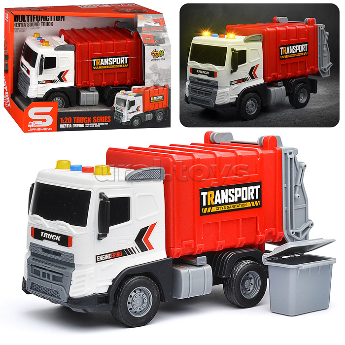 Код: 472497 Штрихкод: 6904110169654 Страна производитель: Китай Размеры упаковки: 11.5 x 22 x 16 см Количество в коробке: 24 • Размеры игрушки: 20х8.5х12 см. • Инерционный механизм движения. • Открывающаяся задняя дверь кузова. • Кнопки на крыше активируют звуки двигателя, клаксона, заднего хода, сопровождаемые подсветкой проблесковых маячков. • Звук и свет работают от 3-х батареек "LR44" (входят в комплект для демонстрации) • В комплекте: 1 мусорный бак. • Материал: пластик. • Соответствует требованиям безопасности продукции. • Для детей от 3-х лет. Комментарии к товару