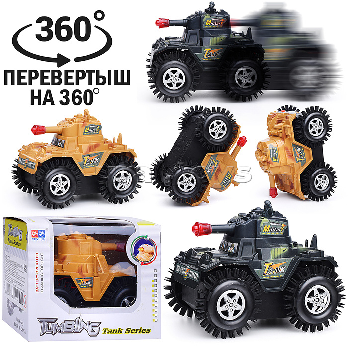 • Размеры игрушки (ДхШхВ): 11х7,5х9 см. • Особенности: - благодаря резиновым колёсам с мягкими ворсинками машина способна преодолевать невысокие преграды, - при перевороте снова встаёт на колёса и продолжает движение, - цвет игрушки в ассортименте. • Для работы нужны 2 батарейки "АА" (не входят в комплект). • Изготовлено из полимерных материалов, пластика. • Соответствует требованиям безопасности продукции. • Для детей от 3-х лет.