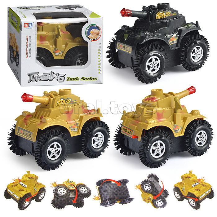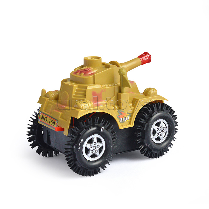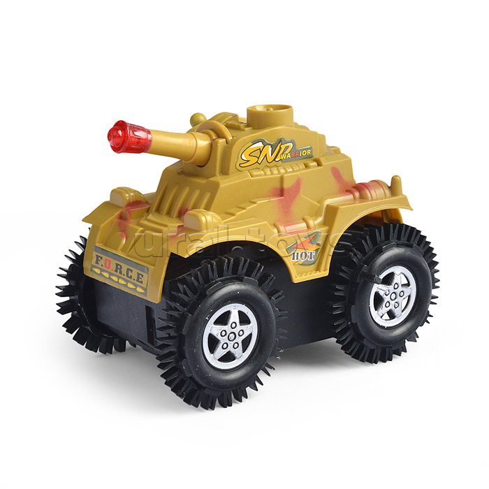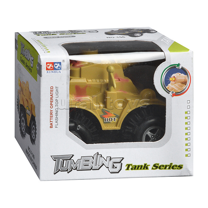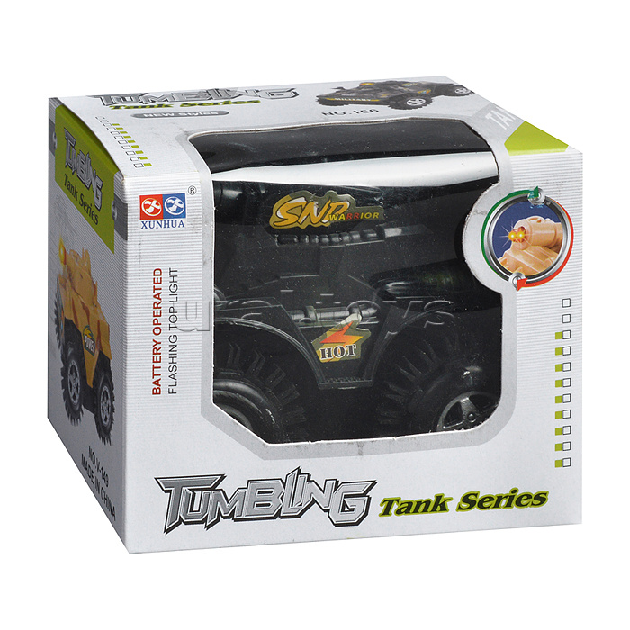 Код: 270582 Страна производитель: Китай Размеры упаковки: 11.7 x 8.7 x 9.6 см Количество в коробке: 96 • Машина работает от 2-х батареек 1.5 V "АА" (не входят в комплект). • Функции: - движение вперёд. - полный привод. - подсветка пушки. • Размеры машины: 11х7х8 см. • Резиновые покрышки с глубоким протектором. • Материал: пластик. • Соответствует требованиям безопасности продукции. • Для детей от 3-х лет. Комментарии к товару