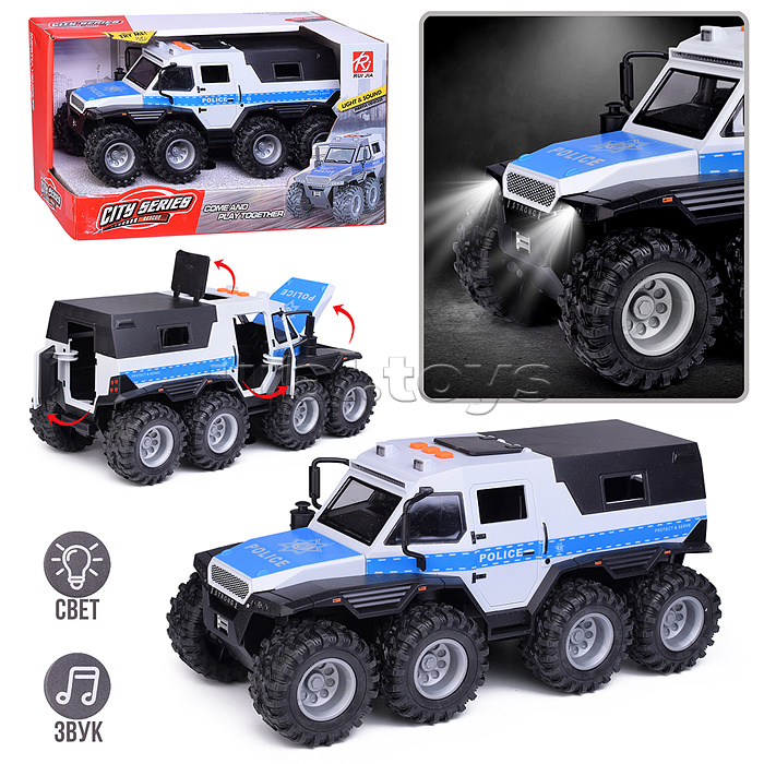 Код: 488575 Штрихкод: 6904110449015 Страна производитель: Китай Размеры упаковки: 30 x 17 x 14 см Количество в коробке: 24 • Размеры игрушки: 25х11.5х11 см. • Инерционный механизм движения. • Открывающиеся двери. • Эффекты: звук мотора, звук сирены. звук заднего хода, мигание фар. • Свет и звук работают от 3-х батареек "LR44" (входят в комплект для демонстрации) • Материал: пластик. • Колёса с резиновыми покрышками. • Соответствует требованиям безопасности продукции. • Для детей от 3-х лет. Комментарии к товару