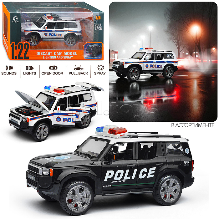 • Размеры игрушки: 20х8,5х9 см. • Инерционный механизм движения. • Открывающиеся двери, капот и багажник • Пар из сопла (при наличии воды в резервуаре) • Свет фар и звук мотора. • Свет, звук и пар работают от 3-х батареек "ААА" (входят в комплект). • Металлический кузов. • Колёса с резиновыми шинами. • Соответствует требованиям безопасности и стандартам качества продукции. • Для детей от 3-х лет.