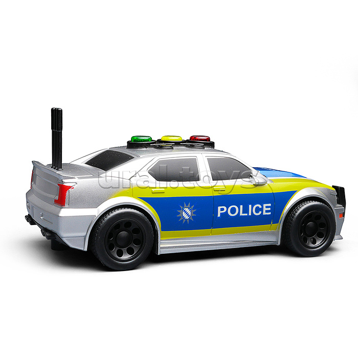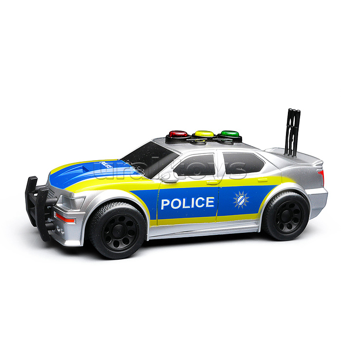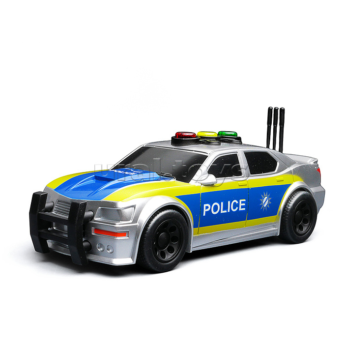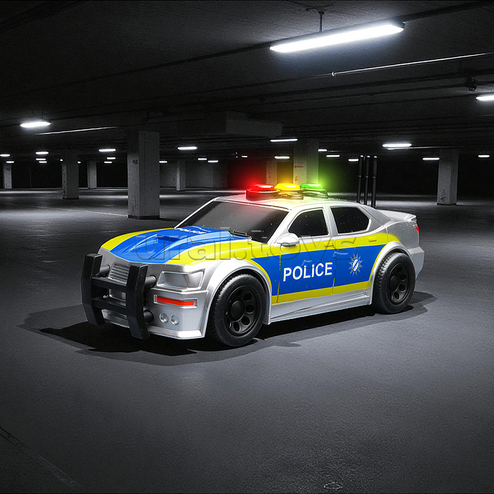 • Размеры машины: 15х6.5х5 см. • Инерционный механизм. • При нажатии кнопок на крыше, воспроизводятся автомобильные звуки и горят лампочки. • Звук и свет работают от 3-х батареек "AG13" (входят в комплект для демонстрации) • Материал: пластик. • Соответствует требованиям безопасности продукции. • Для детей от 3-х лет.