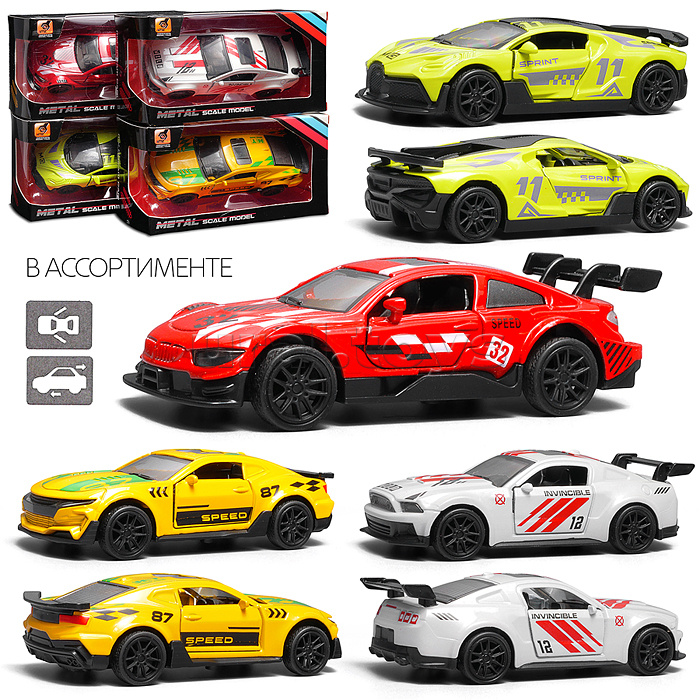 Код: 505497 Штрихкод: 6904112220193 Страна производитель: Китай Размеры упаковки: 5 x 12 x 7 см Количество в коробке: 192 • Размеры машины: 10.5х4.5х2.5 см. • Инерционный механизм движения. • Открывающиеся передние двери. • Металлический кузов. • Пластиковая подвеска. • Колёса с резиновыми покрышками. • Соответствует требованиям безопасности продукции. • Для детей от 3-х лет. Комментарии к товару