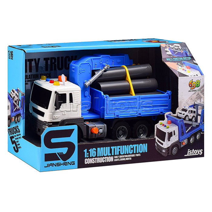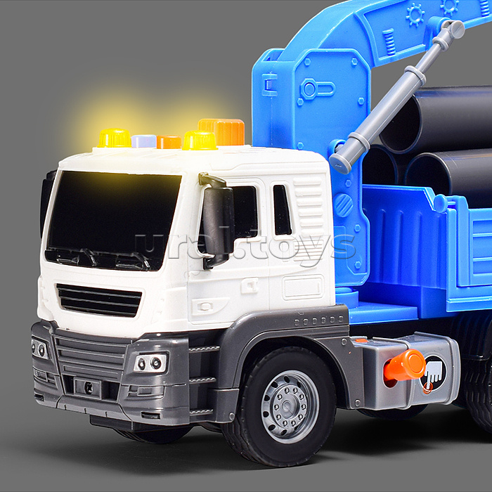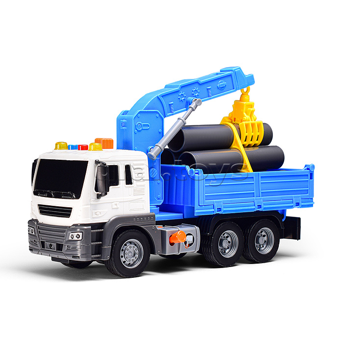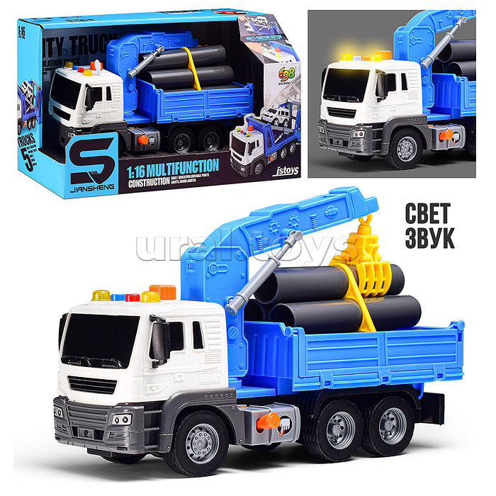 Код: 503133 Штрихкод: 6904110174931 Страна производитель: Китай Размеры упаковки: 33 x 13 x 17.5 см Количество в коробке: 18 • Размеры машины (ДхШхВ): 24.5х8.5х13 см. • Функции: - инерционный механизм движения. - выдвижная стрела. - пневматический механизм поднятия и опускания стрелы. - звук запуска и работы мотора. - звук клаксона. - звук работы подъёмника. - сигнал заднего хода. - мигание проблесковых маячков. • Свет и звук работают от 3-х батареек "AG13" (входят в комплект для демонстрации). • Материал: пластик. • Соответствует требованиям безопасности продукции. • Для детей от 3-х лет. Комментарии к товару