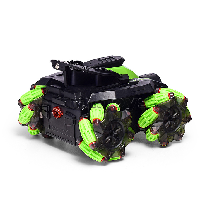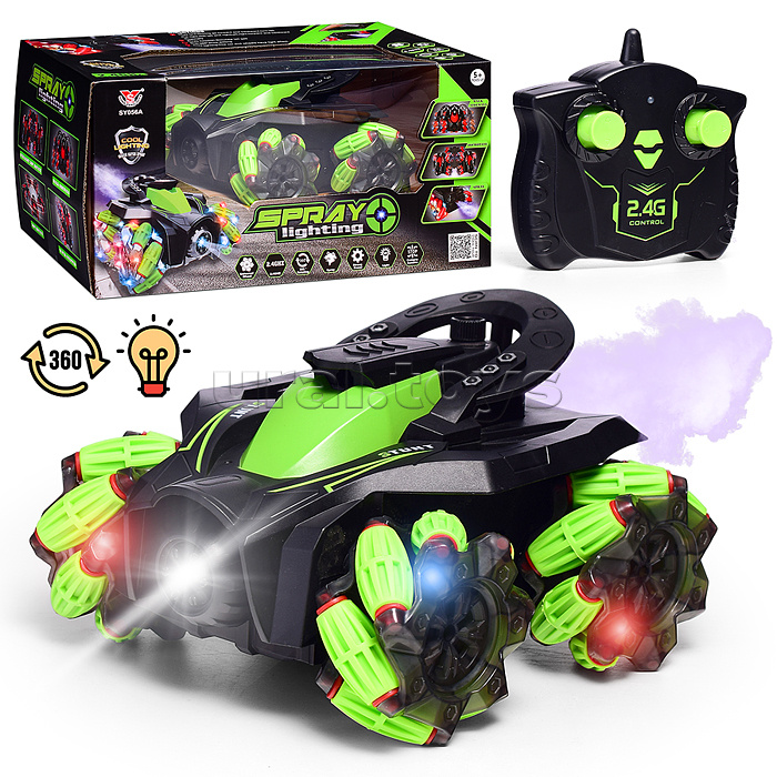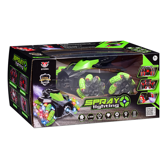 Код: 490741 Штрихкод: 6904111479707 Страна производитель: Китай Размеры упаковки: 33 x 19 x 16 см Количество в коробке: 24 • В наборе: - машина - работает от аккумулятора "3.7V 500mAh" (входит в комплект). - пульт управления - работает от 2-х батареек "ААА" (не входят в комплект). - USB-шнур для зарядки аккумулятора. • Функции: - движение вперед, назад, боком без поворота колес. - подсветка колёс и свет фары. - пар из сопла (при наличии воды в резервуаре) • Размеры игрушки: 17х16х11 см. • Материал: пластик. • Соответствует требованиям безопасности и стандартам качества продукции. • Для детей от 5 лет. Комментарии к товару