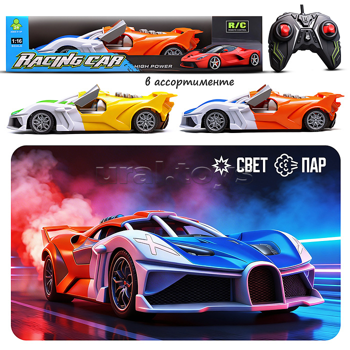 Код: 503647 Штрихкод: 6933118331213 Страна производитель: Китай Размеры упаковки: 33 x 12 x 7 см Количество в коробке: 60 • Размеры машины: 26×11×7 см. • Машина работает от 4-х батареек «АА» (не входят в комплект) • Пульт управления работает от 2-х батареек «АА» (не входят в комплект). • Функции: — движение вперед, назад, влево, вправо. — холодный пар из сопла (при наличии воды в резервуаре) — подсветка сопла. • Материал: пластик. • Соответствует требованиям безопасности продукции. • Для детей от 3-х лет. Комментарии к товару
