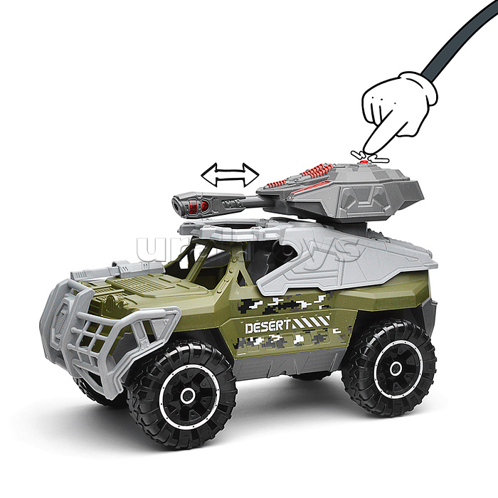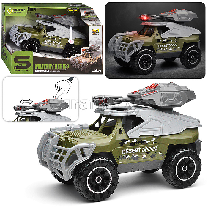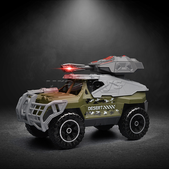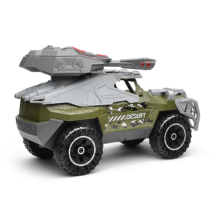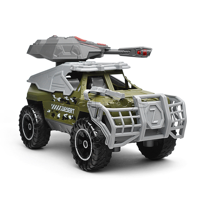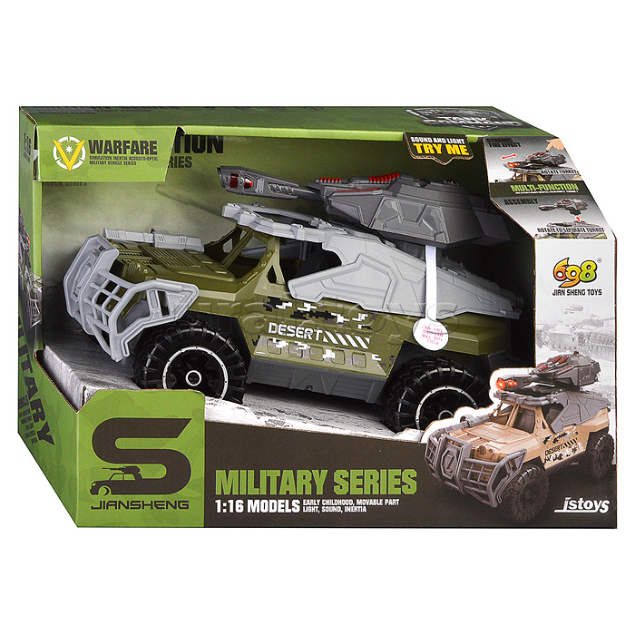 Код: 472505 Штрихкод: 6904110893368 Страна производитель: Китай Размеры упаковки: 16.5 x 33 x 22 см Количество в коробке: 12 • Размеры игрушки: 27х13.5х17 см. • Инерционный механизм движения. • Кнопка на гранатомете активирует звук выстрелов с подсветкой. • Звук и свет работают от 2х батареек "АА" (входят в комплект для демонстрации) • Материал: пластик. • Соответствует требованиям безопасности продукции. • Для детей от 3-х лет. Комментарии к товару