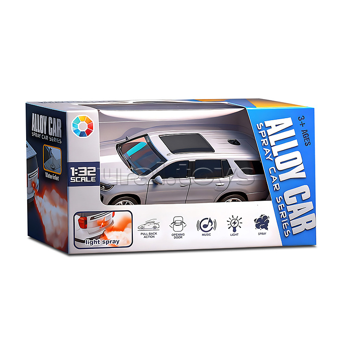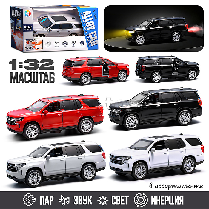 • Размеры игрушки: 12.5х5х4.5 см. • Инерционный механизм движения. • Открывающиеся двери. • Пар из сопла (при наличии воды в резервуаре) • При нажатии на корпус, работает мотор, мигают фары и идёт пар. • Свет, звук и пар работают от 4-х батареек "LR44" (входят в комплект). • Металлический кузов. • Колёса с резиновыми шинами. • Соответствует требованиям безопасности и стандартам качества продукции. • Для детей от 3-х лет.