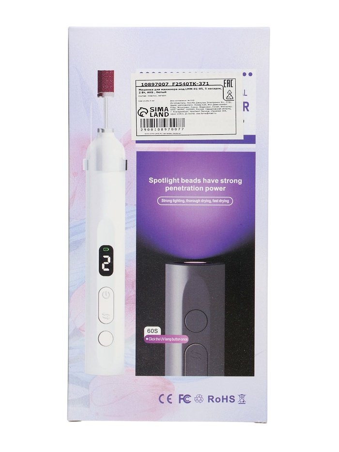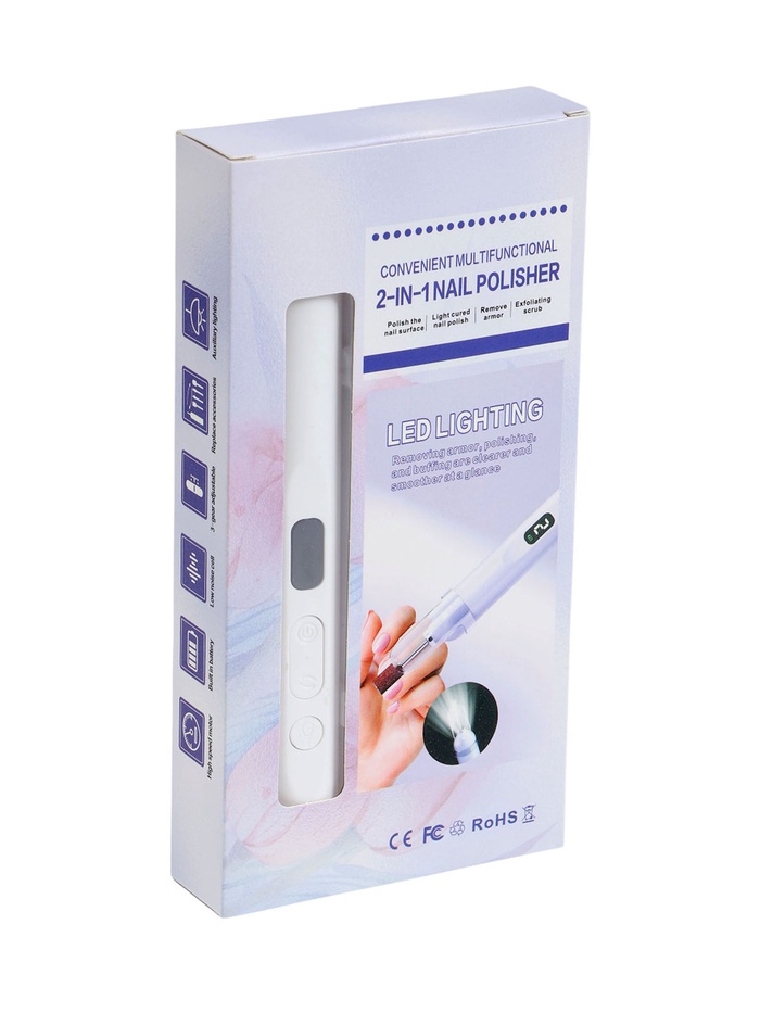 Страна: Китай В боксе: 200 шт Состав: Металл, пластик Материалы: металл, пластик Фасовка: по 1 шт Индивидуальная упаковка: Цветная картонная коробка Габариты товара: 13,5 см × 2,2 см × 2,2 см Сертификат: ЕАС Тип питания: От аккумулятора Цвет: Белый Мощность, Вт: 2 Количество насадок: 5 Гарантийный срок, мес.: 6 Материал корпуса: Пластик Вид устройства: Машинка для маникюра и педикюра Дисплей: Да Реверс: Да Ножная педаль: Нет Портативная машинка для маникюра и педикюра с мощностью 2 Вт и пятью насадками позволяет добиться профессионального результата в домашних условиях, используя лишь аккумулятор для полной мобильности. Белый пластиковый корпус сочетает лёгкость и эргономику, а наличие дисплея и встроенной подсветки упрощает контроль скорости и обеспечивает отличную видимость во время процедур, делая уход за ногтями точным и приятным процессом. Автономное питание от аккумулятора освобождает от проводов, обеспечивая удобство в поездках или на отдыхе, а разнообразие насадок покрывает все этапы процедур — от шлифовки до полировки. Без лишних элементов вроде ножной педали или реверса модель фокусируется на простоте и эффективности, минимизируя усталость во время использования.