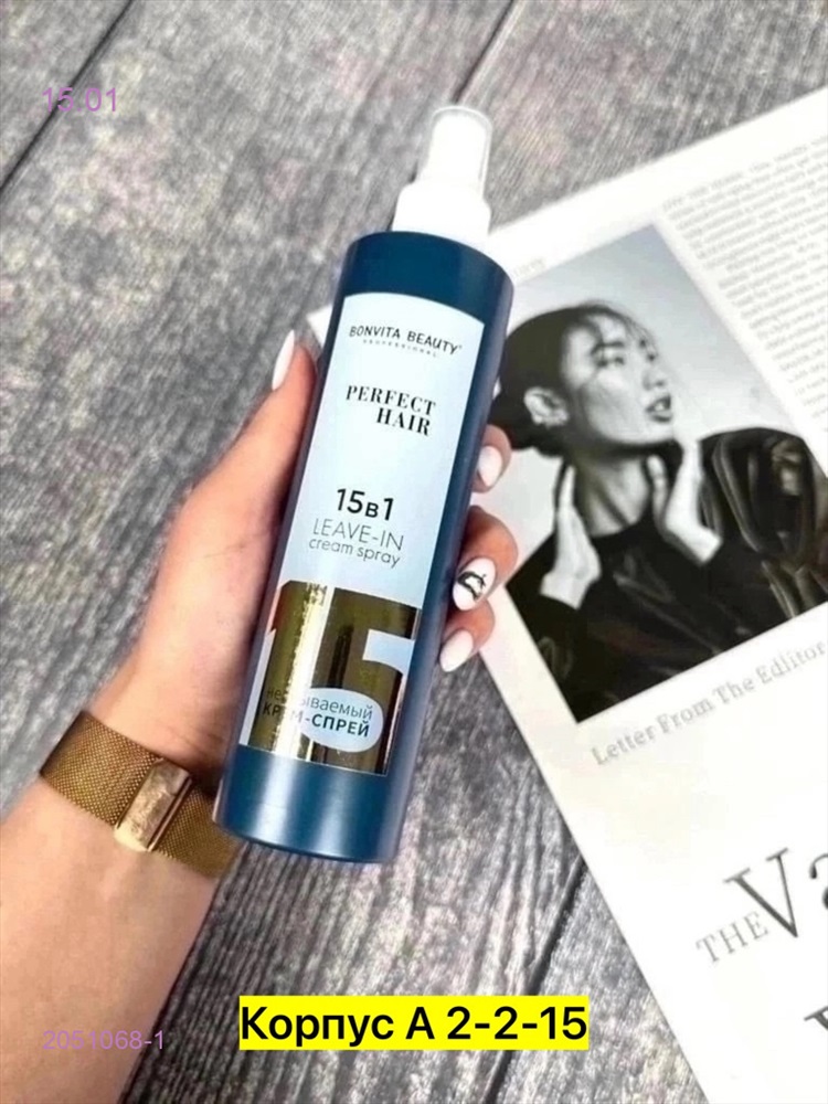 Маска для волос,Несмываемый крем-спрей 15 в 1Заменяет пятнадцать привычных средств для ухода и укладки и действует сразу в пятнадцати направлениях: возвращает мягкость волосам, устраняет эффект пушистости волос, защищает от теплового