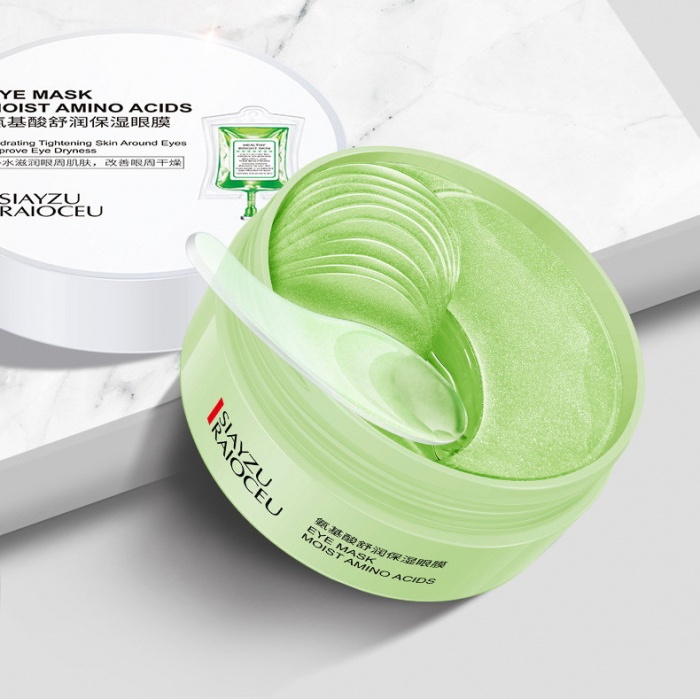 О товареАнтивозрастная маска под глаза SIAYZU RAIOCEU изготовлена в Китае. Продукт представляет собой плоские подушечки – патчи (60 шт.), пропитанные гидрогелевой основой увлажняющего действия. Гелеобразная сыворотка с патчами находится в герметичной светонепроницаемой баночке. Маска издает едва ощутимый, нежный парфюмерный аромат, не вызывает аллергию. СоставОсновные компоненты действующего вещества – аминокислоты: валин, лейцин, аргинин, пролин, глицин, серин, треонин, гистидин, аланин. В комплексе они: