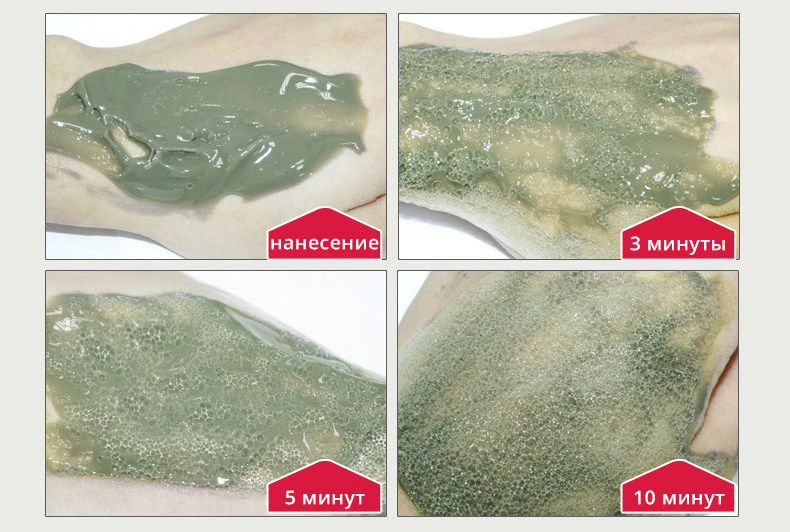 Небольшое количество маски распределяется по всему лицу. Когда начинается пузырение, можно слегка помассировать, уделить особое внимание Т-зоне. Через 15 минут пенную массу необходимо смыть теплой водой.
