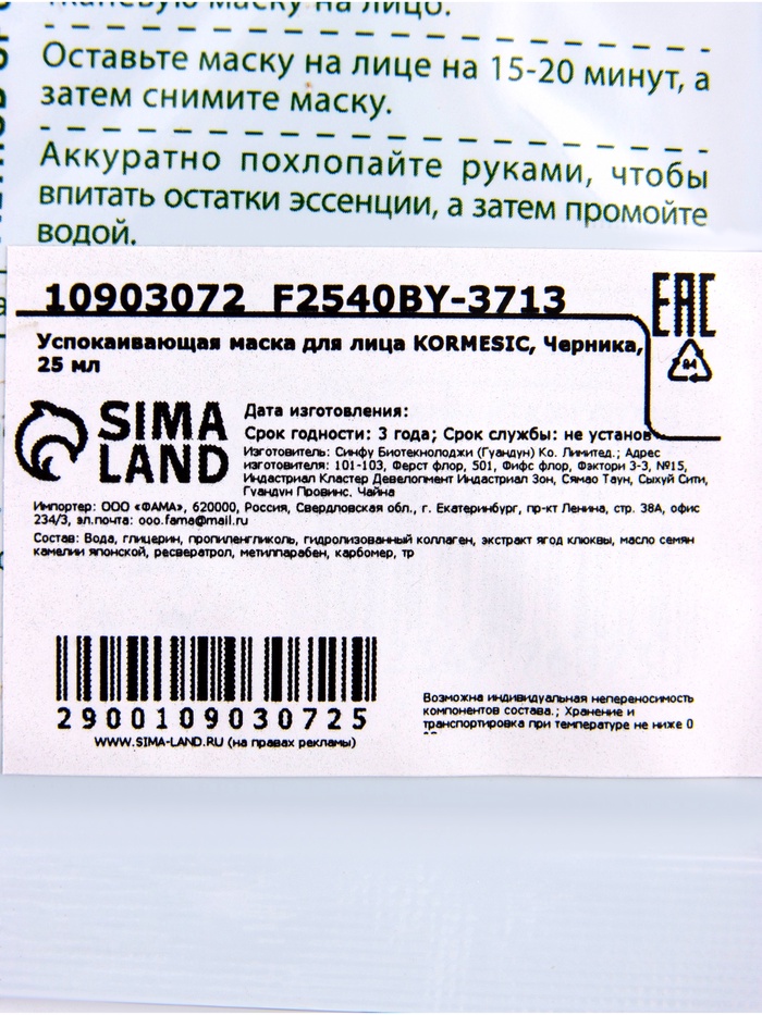 Мягкая тканевая основа плотно прилегает к лицу, равномерно распределяя эссенцию и создавая ощущение свежести и комфорта. Уже после первого применения кожа становится более гладкой, увлажнённой и ухоженной.