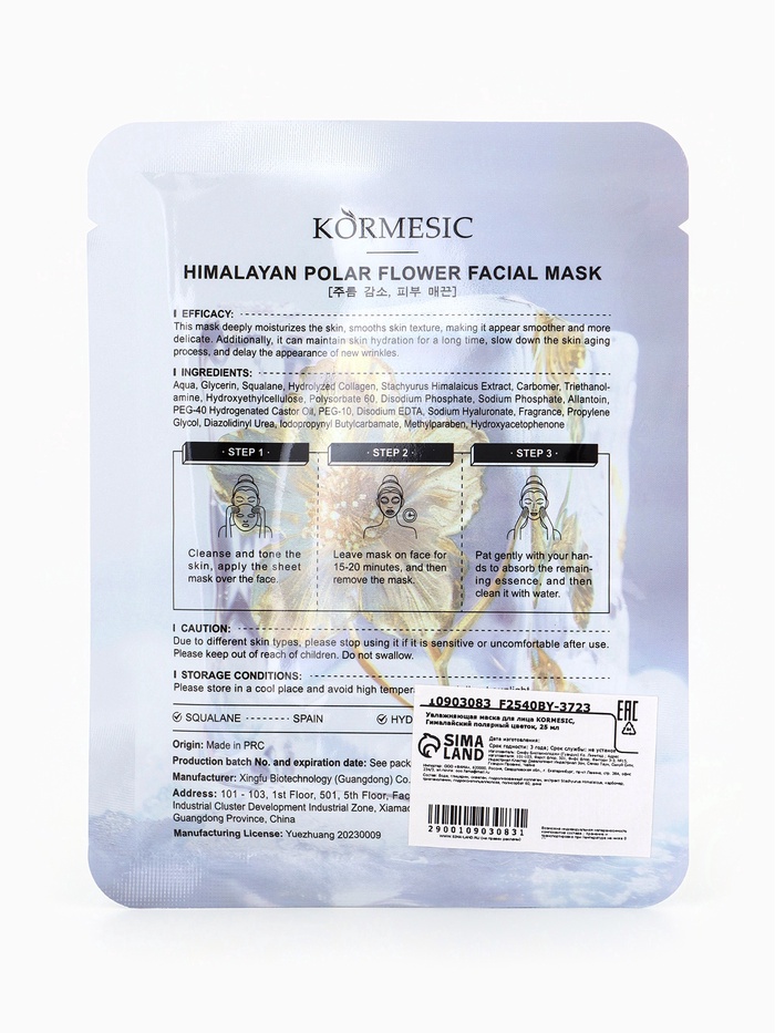 Погрузитесь в атмосферу нежного ухода и глубокого увлажнения с тканевой маской KORMESIC «Гималайский полярный цветок», созданной для восстановления сухой и чувствительной кожи. Экстракт гималайского полярного цветка насыщает кожу влагой, укрепляет её естественный барьер и придаёт ощущение свежести и комфорта.