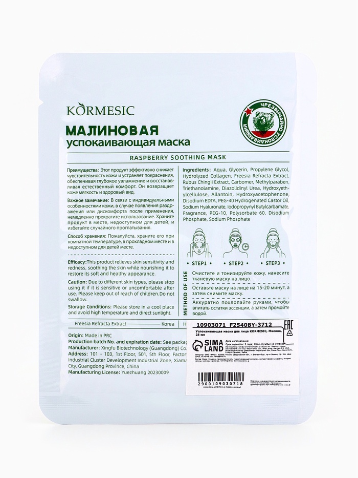 Погрузитесь в атмосферу нежности и заботы с тканевой маской KORMESIC «Малина», созданной для интенсивного ухода за чувствительной и раздражённой кожей. Экстракт малины насыщает кожу витаминами и антиоксидантами, помогает укрепить её естественный защитный барьер и возвращает здоровое сияние.