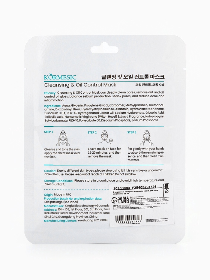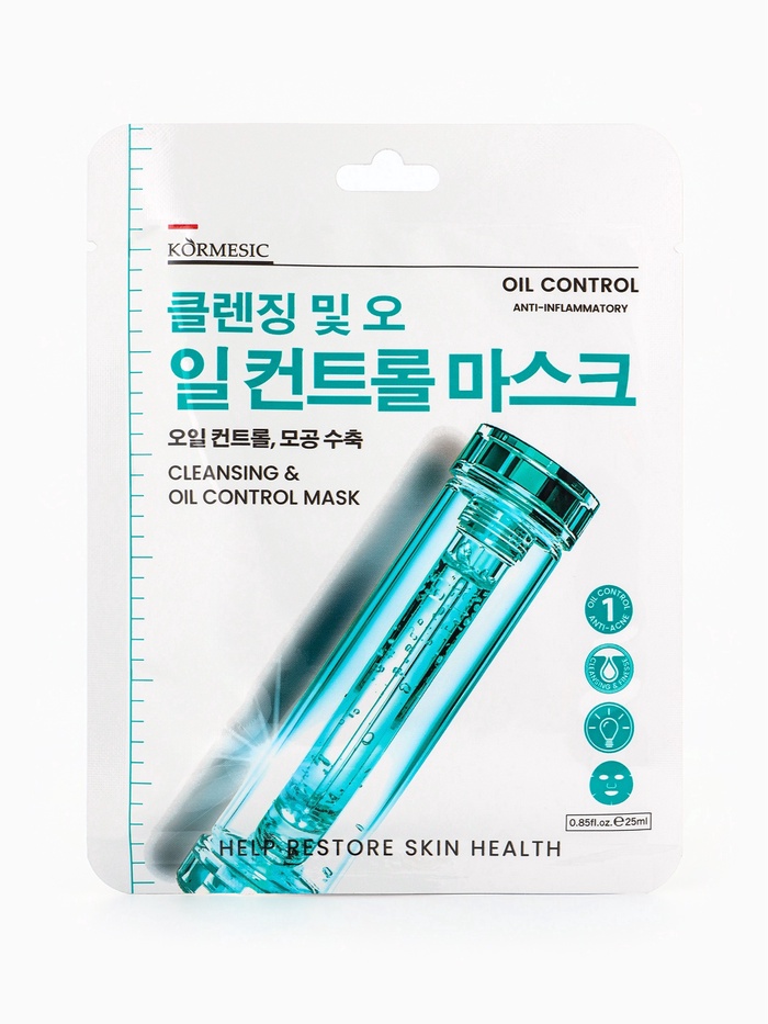 Погрузитесь в атмосферу свежести и баланса с тканевой маской KORMESIC «Очищение и контроль жирности», созданной для ухода за комбинированной и жирной кожей. Формула с активными компонентами регулирует выработку себума, очищает поры и помогает предотвратить появление блеска, придавая коже чистый и ухоженный вид.
