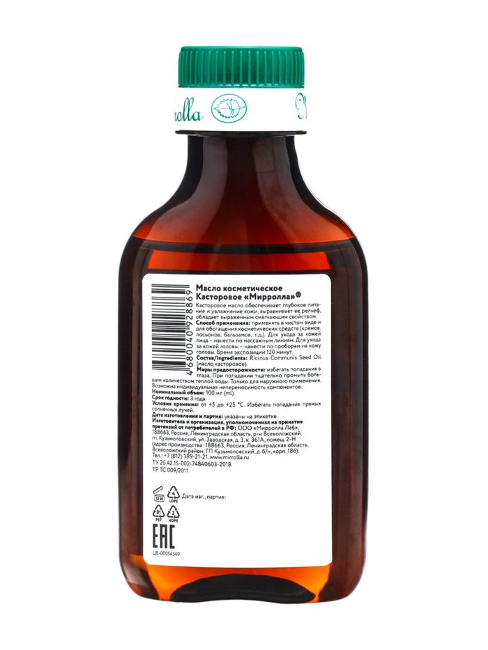 Габариты: 6 x 3 x 13,5 Страна: Россия В боксе: 40 шт Состав: См. на упаковке Материалы: см. на упаковке Фасовка: по 1 шт Индивидуальная упаковка: Без упаковки Сертификат: ЕАС Объём, мл: 100 Темпер. ограничение НЕ НИЖЕ ℃: 0 Масло глубоко питает и увлажняет кожу, выравнивает её рельеф, сокращает мелкие морщины. Волосы и эпидермис становятся значительно мягче. Используйте для всего тела, в том числе для ресниц и волос. Средство ускоряет их рост и препятствует выпадению. Состав: Ricinus Communis Seed Oil (масло касторовое). Рекомендации по применению Применяйте в чистом виде и для обогащения косметических средств (кремов, лосьонов, бальзамов, т. д.). Для ухода за кожей лица нанесите по массажным линиям. Для ухода за волосами нанесите на них подогретое масло. Время экспозиции: до 120 минут. Противопоказания: повышенная чувствительность к компонентам, беременность. Специальные указания: избегать попадания в глаза. При попадании тщательно промыть большим количеством тёплой воды. Только для наружного применения. Условия хранения: температура от 5 до 25 °C, недоступное для детей место. Избегать прямых солнечных лучей. Срок годности: 3 года. Комментарии к товару