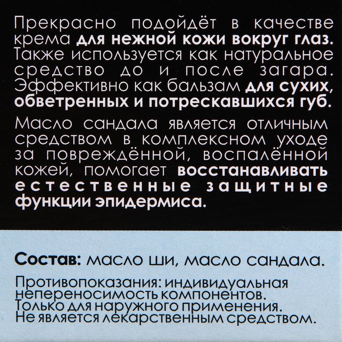 Состав: масло ши, масло сандала.
