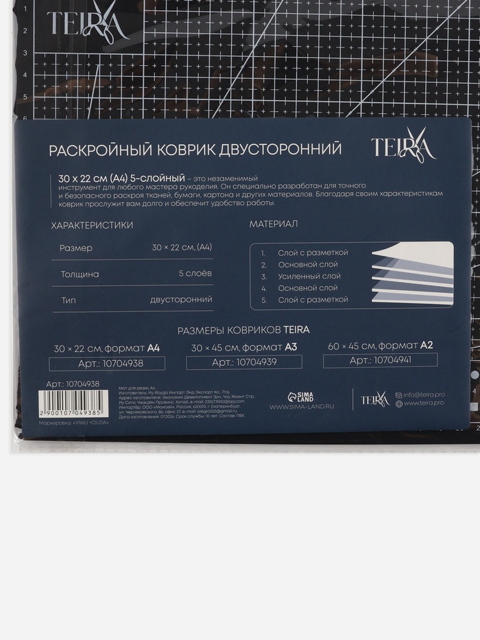 Габариты: 30,5 x 22,5 x 0,3 В боксе: 50 шт Габариты товара: 30 см × 22 см × 0,5 см Формат: А4 Назначение: Для вырезания Страна: Китай Состав: ПВХ Материалы: ПВХ Фасовка: по 1 шт Индивидуальная упаковка: Пакет Сертификат: Не подлежит сертификации Материал: ПВХ Температурное ограничение транспортировки: Да Пятислойный мат для резки представляет собой универсальный инструмент, который широко используется для скрапбукинга, пэчворка, квилтинга, вышивки и других видов творчества. Основные преимущества коврика для рукоделия