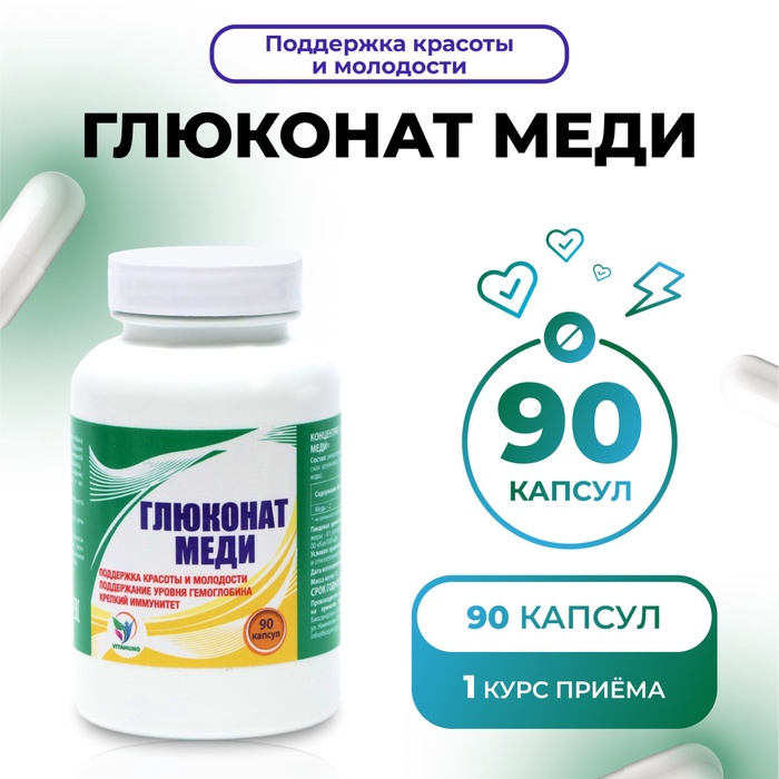 Габариты: 5,6 x 5,6 x 9,5 Страна: Россия В боксе: 110 шт Состав: См. на упаковке Материалы: см. на упаковке Фасовка: по 1 шт Индивидуальная упаковка: пластиковая баночка Сертификат: ЕАС Для кого: Для мужчины, Унисекс, Для женщины В упаковке, шт.: 90 Возраст: Для взрослых Назначение: Для кожи, волос и ногтей Форма выпуска: Капсулы Микроэлементы: Cu (медь) Показания: Укрепление иммунитета Действие: Общеукрепляющее Концентрат пищевой «Глюконат меди». Медь играет важную роль в выработке и гемоглобина и формировании эритроцитов, имеет большое значение в выработке энергии и работе иммунной системы, участвует в выработке эластина и коллагена. Медь предупреждает преждевременное старение, укрепляет волосы, поддерживает упругость и молодость кожи. Способ применения: по 1 капсуле в день во время еды. Меры предосторожности: индивидуальная непереносимость отдельных компонентов, беременность, кормление грудью. Перед применением рекомендуется проконсультироваться с врачом. Не является лекарством и БАД. Хранить при температуре не выше 25С и относительной влажности воздуха не выше 85%. Срок годности 36 месяцев с даты изготовления. Состав: антислеживающий агент микрокристаллическая целлюлоза, глюконат меди, капсула (желатин, вода). Комментарии к товару