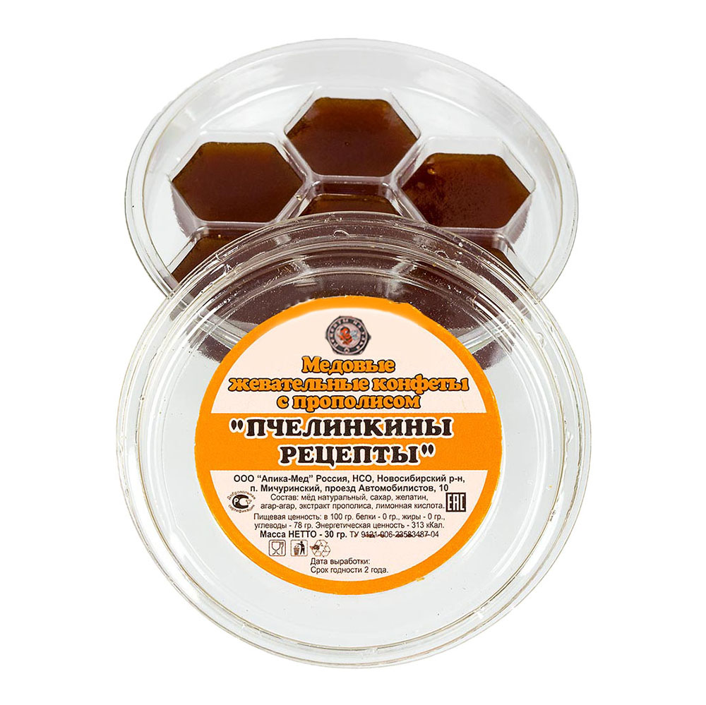 мёд натуральный, сахар, желатин, агар-агар, лимонная кислота, прополис.