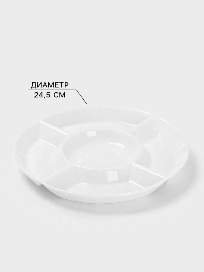 Габариты: 24,5 x 24,5 x 2,5 Страна: Китай В боксе: 24 шт Состав: Фарфор Материалы: фарфор Фасовка: по 1 шт Индивидуальная упаковка: Без упаковки Сертификат: РСТ Набор: Нет Цвет: Белый Форма: Круглая Диаметр, см: 24,5 В наборе, шт.: 1 Количество ячеек: 5 Тематика: Однотонная Рисунок: Нет Крышка: Нет Материал: Фарфор Можно мыть в посудомоечной машине: Да Можно использовать в СВЧ-печи: Да Текстура: Гладкая Особенности: Без особенностей Матовая поверхность: Нет Посуда Wilmax – это плавные линии, кристальная прозрачность и безукоризненное качество. Преимущества изделий: