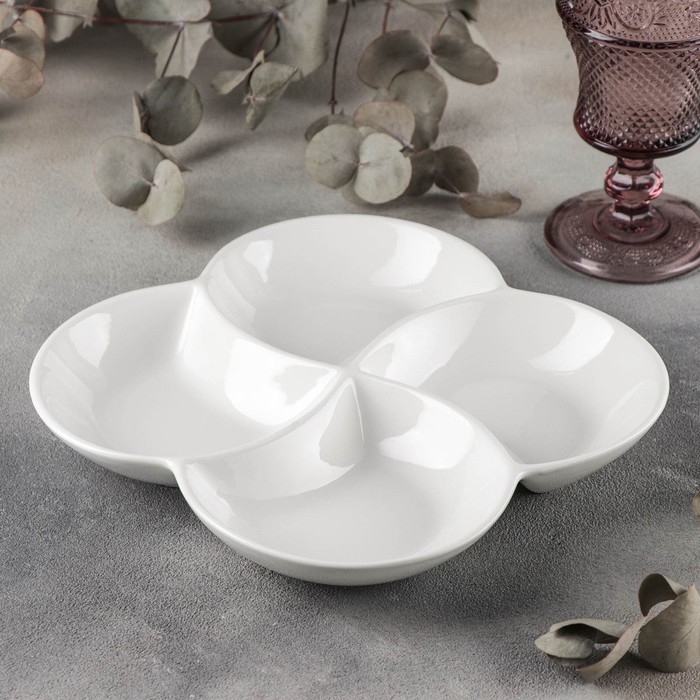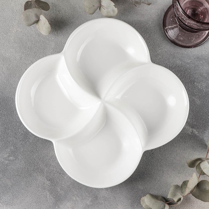 Менажница фарфоровая 4 ячейки Wilmax, 22×22 см, цвет белый