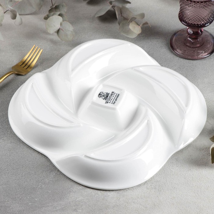 Менажница фарфоровая 5 ячеек Wilmax, d=30 см, цвет белый