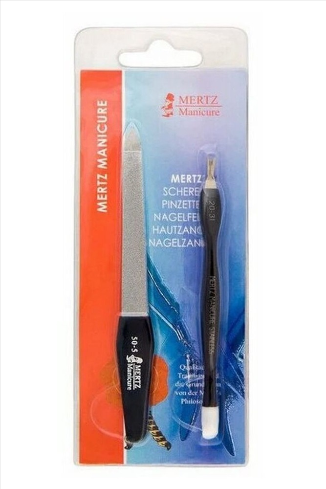 ID товара: 1108857 Сезон: Демисезон Производитель: Mertz Срок годности (мес): Не ограничен Количество в упаковке: 2 предмета Страна бренда: Россия Страна производства: Китай Состав набора: пилка для ногтей, 12 см + нож для заусенцев с резинкой, 11 см Для тех, кому нет необходимости покупать большие наборы маникюрных инструментов, немецкая компания Mertz предлагает выбрать необходимые маникюрные инструменты по отдельности или небольшими комплектами в недорогой пластиковой упаковке-блистере. Набор маникюрный в блистере из 2 предметов (801) предлагает очень удобный и при этом недорогой комплект из отличной двухсторонней пилочки для ногтей и V-образного ножа для кутикул с резинкой на противоположном конце удобной пластиковой ручки. Форма ручки такова, что она не выскальзывает и ее очень комфортно держать в руках, а сделанное из отличной инструментальной стали с хромированным покрытием лезвие имеет настолько острые режущие кромки, что просто идеально для срезания кутикулы. Комментарии к товару