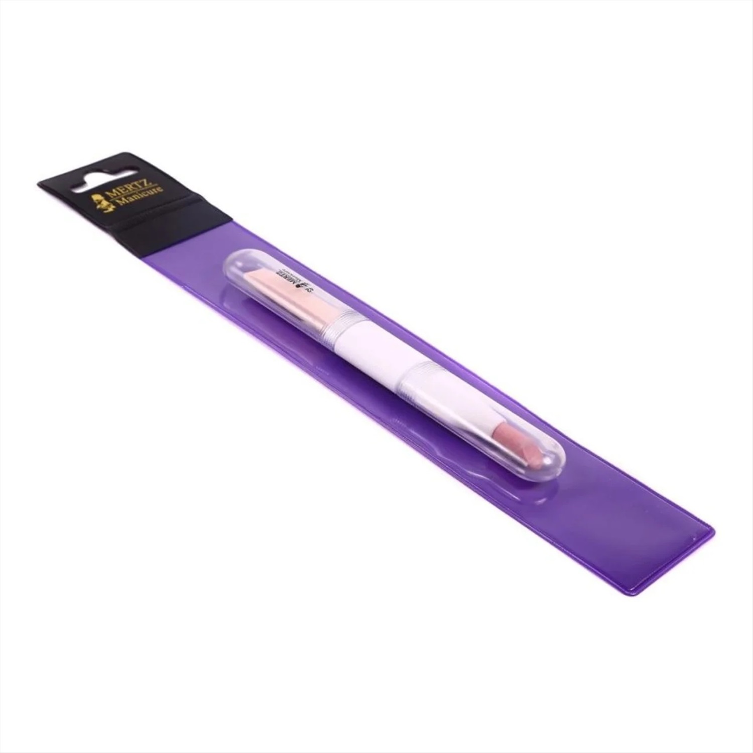 Пилка керамическая в футляре Mertz A42 очень деликатна. Для комфортного удаления кутикулы немецкий бренд разработал специальную керамическую пилочку. Небольшой инструмент, длиной всего 13,5 см, рекомендуется использоваться для дополнительной обработки ногтевой пластины, после того, как апельсиновые палочки или шаберы отодвинут основную кутикулу. Такую кожицу следует обработать специальным гелевым средством, и только потом использовать керамическую пилочку. Аккуратно двигаясь по часовой стрелке, вы быстро и предельно просто придадите своим ручкам ухоженный вид, словно только что вышли из профессионального салона.