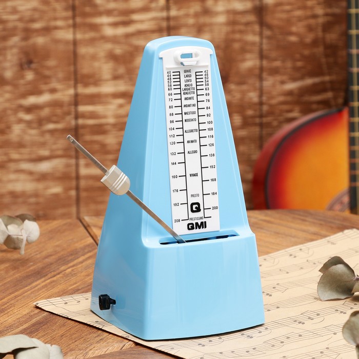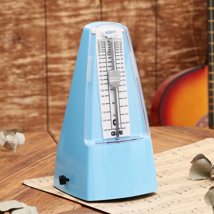 Метроном механический Gleam, синий, 40-408 ударов в минуту, 21×10×12 см