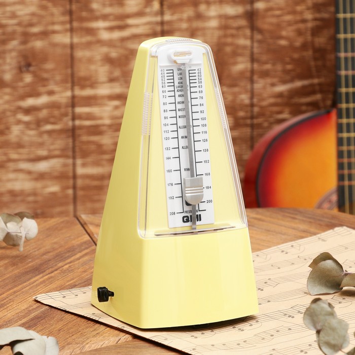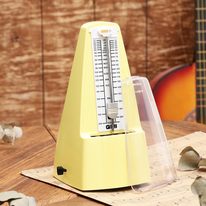 Метроном механический Gleam, желтый, 40-408 ударов в минуту, 21×10×12 см