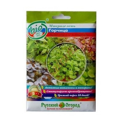 В ростках горчицы преобладают аскорбиновая кислота и рутин (витамины С и Р) - прекрасное противоцинготное средство, предупреждающее старение стенок кровеносных сосудов. Молодые листочки употребляют как в свежем, так и в отварном виде. Благодаря перечному вкусу и тонкому аромату придадут легкую остроту мясным и рыбным блюдам, овощным салатам и закускам. Эта пикантная добавка к пище стимулирует аппетит и кровообращение. Выращивается круглый год.