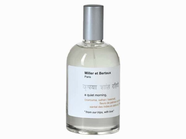 Miller et Bertaux A Quiet Morning («Миллер эт Бетро. Тихое утро») - это аромат для мужчин и женщин. Выпущен в 2008 году. Парфюм принадлежит к группе ароматов фужерные пряные. Аромат можно отнести к запахам, которые приятны душе и телу. Особенный и нежный, сексуальный и тонкий, влекущий и манящий парфюм. Аромат ненавязчив и легок, чувственен и прозрачен. Парфюм гармоничен по своему характеру и поэтому превосходно подходит как для прекрасной, так и для сильной половины. Также интересен и женский аромат от этого же бренда - Miller et Bertaux Bois de Gaiac et Poire. Композиция аромата Miller et Bertaux A Quiet Morning включает ноты: шафран, куркума, рис, лист пальмы, древесные ноты и специи. Комментарии к товару