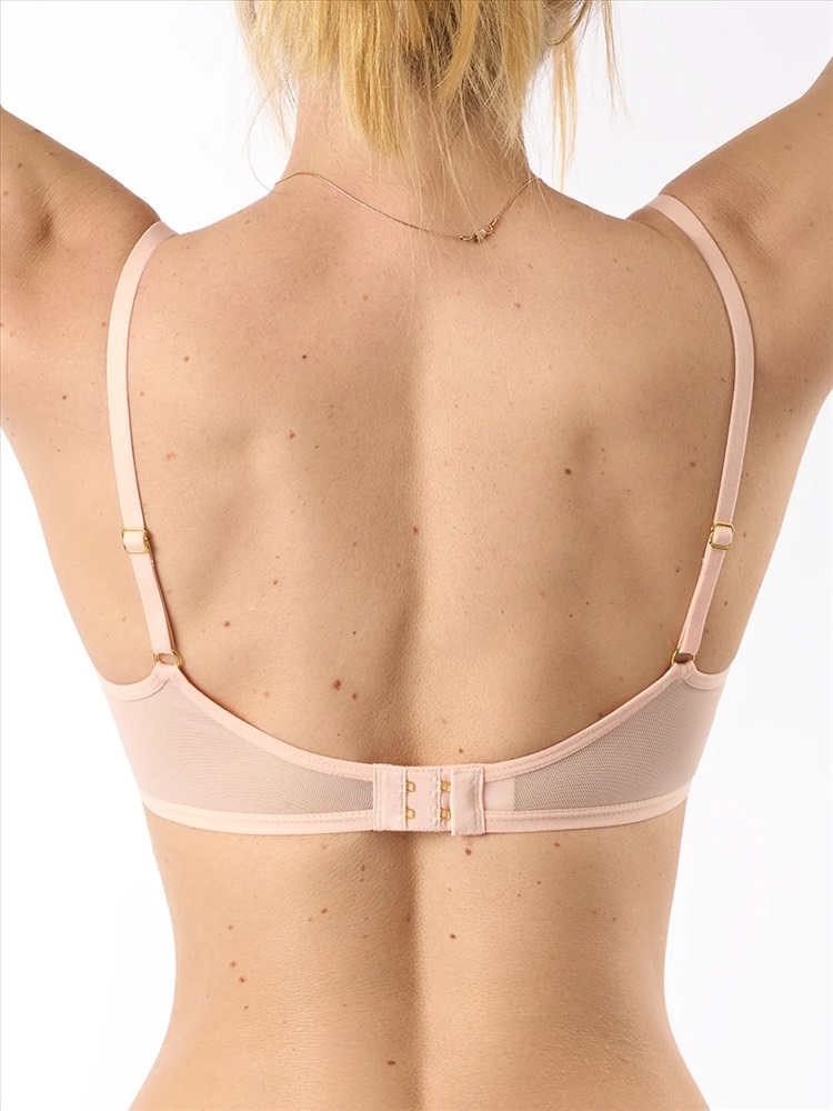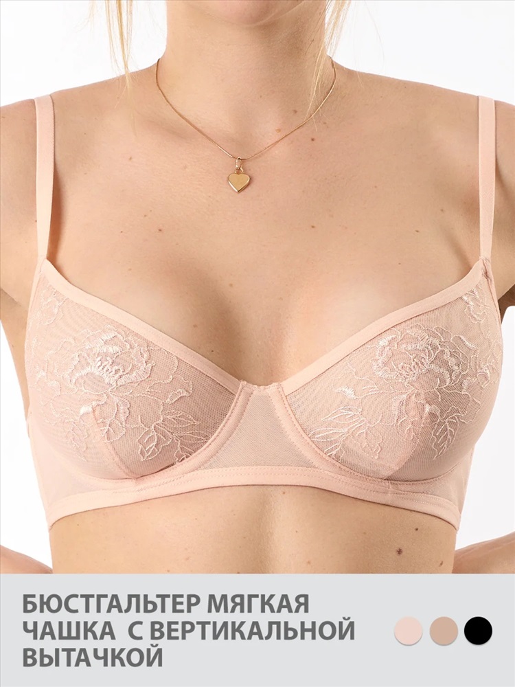 Бюстгальтер из сетки на стане с мягкими чашками на косточках. С изящной цветочной вышивкой и контрастной отделкой по краям. Придает груди эффектную округлую форму. Удобный стан и регулируемые бретели обеспечивают превосходное облегание и надежную поддержку. Застежка на два крючка создает дополнительный комфорт.