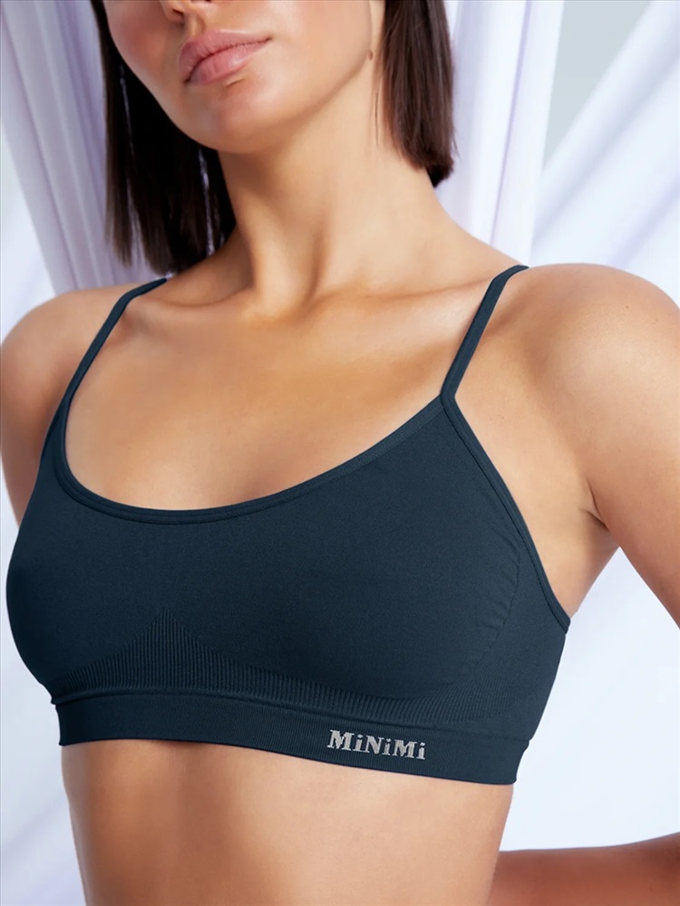 Женский топ MiNiMi на тонких бретелях. Выполнен из микрофибры, которая обладает гладкой текстурой, приятно ощущается на теле, превосходно пропускает воздух, впитывает влагу, хорошо сохраняет форму и цвет. Бесшовная технология производства Seamless обеспечивает комфортное облегание благодаря отсутствию вертикальных швов и вывязанным переходам в области груди.