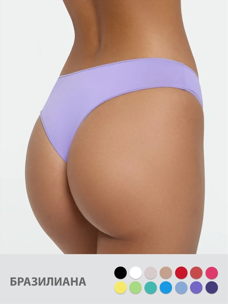 Женские трусы - бразилиана с низкой линией талии и узкой боковиной. Изготовлены из гладкой микрофибры, которая обладает приятной текстурой и отлично пропускает воздух. Добавление эластана обеспечивает идеальное облегание и сохранение формы. Мягкая резинка и края, обработанная частой строчкой оверлока создают дополнительный комфорт. Ластовица выполнена из хлопка.