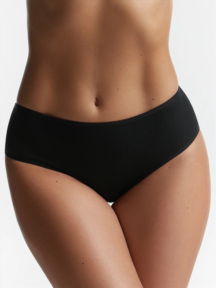 Женские трусы – слипы в рубчик со средней линией талии и широкой боковиной. Изготовлены из высококачественного хлопка, который отлично пропускает воздух, приятно ощущается на теле и подходит даже для чувствительной кожи. Добавление эластана обеспечивает превосходное облегание и сохранение формы. Деликатная обработка края мягкой резинкой создают максимальный комфорт.