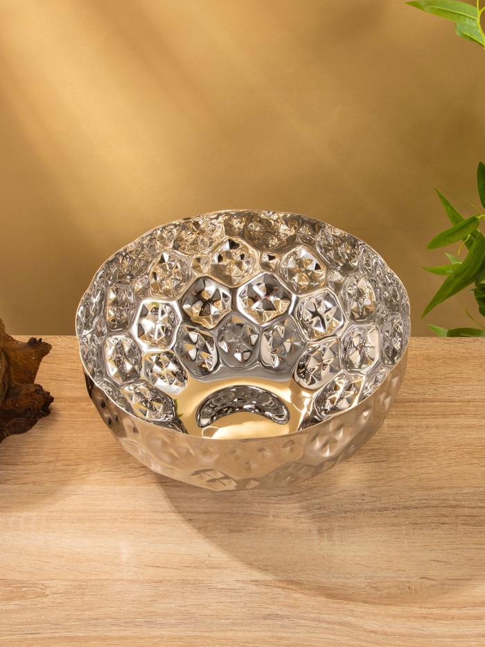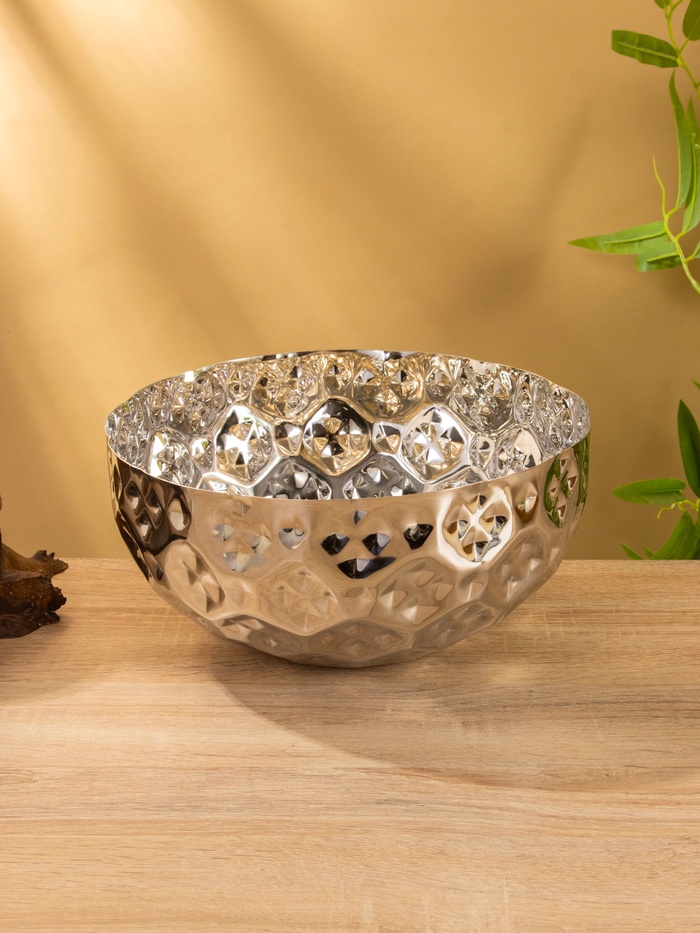 Страна: Индия В боксе: 6 шт Состав: Нержавеющая сталь Материалы: нержавеющая сталь Фасовка: по 1 шт Индивидуальная упаковка: Картонная коробка Габариты товара: 25 см × 25 см × 12,5 см Сертификат: СТР Набор: Нет Цвет: Серебристый Диаметр, см: 25 Объём, л: 3,5 Объём, мл: 3500 Тематика: Однотонная Рисунок: Нет Крышка: Нет Материал: Нержавеющая сталь Можно мыть в посудомоечной машине: Нет Можно использовать в СВЧ-печи: Нет Текстура: С рельефом Особенности: Без особенностей Для горячего: Да Гранёная миска из нержавеющей стали. Вместимость 3,5 литра, диаметр 25 см. Классический серебристый цвет с рельефной поверхностью. Универсальная посуда для кухни и сервировки. Преимущества