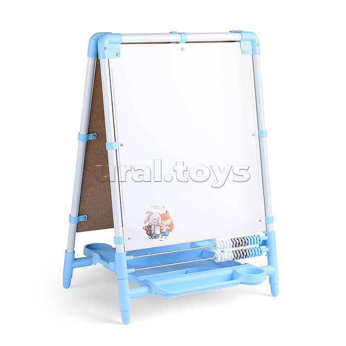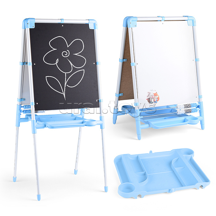 Размер в разложенном виде: 500х500х1060 мм. Размер изделия в сложенном виде: 730х500х70 мм. Размер рабочей поверхности: 443х518/443х528 мм. Вес нетто: 4,3 кг. Функции: -Две рабочие поверхности: меловая – для рисования мелом; магнитная – для рисования маркерами на водной основе и игр с магнитной азбукой и мозаикой (в комплект не входит). -Регулировка высоты: от 710 до 1060 мм. -Вместительный органайзер. -Счеты для развития математических навыков. -Пластиковые колпачки на опорах против скольжения и повреждения напольного покрытия. -Устойчивая конструкция. -Компактное хранение в сложенном виде. Материал: сталь, пластмасса, КДВП. Соответствует требованиям безопасности и стандартам качества продукции. Для детей в возрасте от 3 лет.