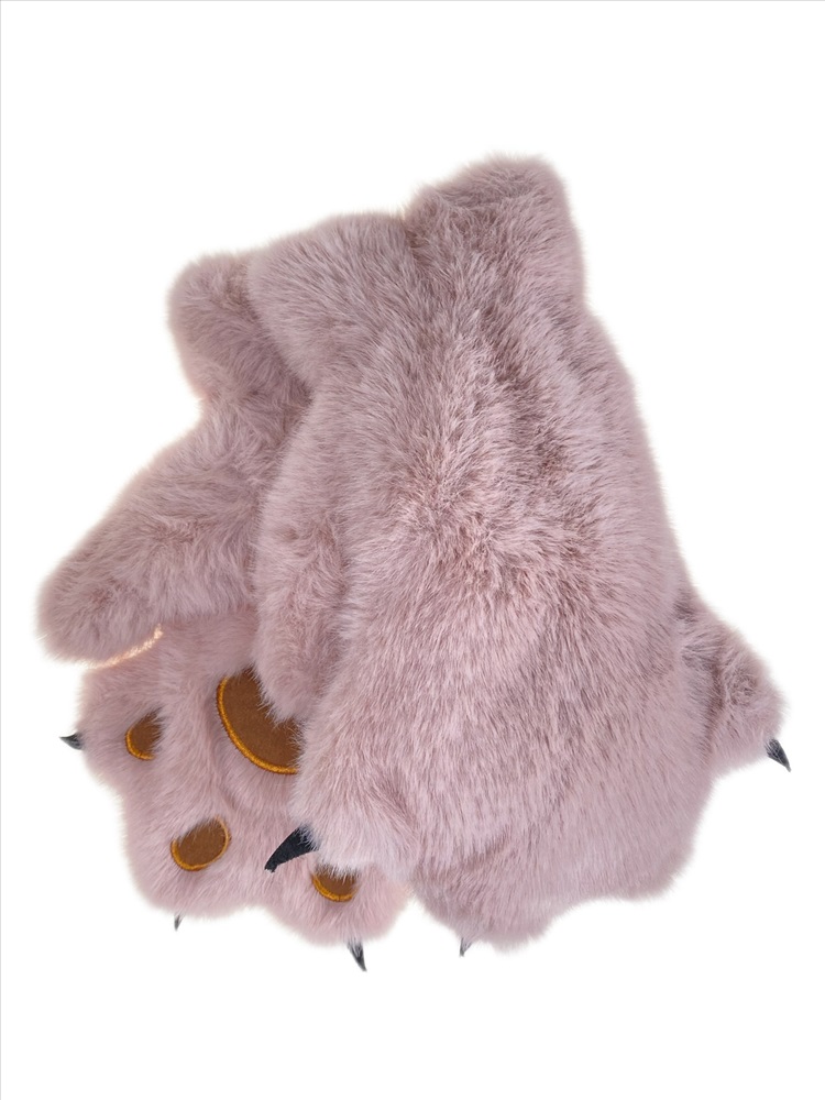 Молодёжные меховые зимние перчатки лапки , цвет розовый