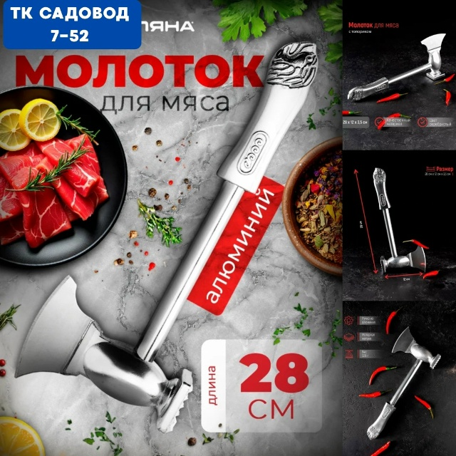 Облегчите приготовление пищи с помощью этого молотка для мяса с топориком. Молоток предназначен для отбивания мяса, что делает его более нежным и сокращает время для приготовления. Рабочая поверхность молотка имеет две стороны: с крупными зубцами и топорик кухонный. Удобная металлическая ручка, имеет классическую форму. Кухонная отбивалка для мяса топориком для мяса не предназначена для мытья в посудомоечной машине. Молоток металлический для отбивания мяса - это кухонный инструмент, который используется для приготовления мясных блюд.