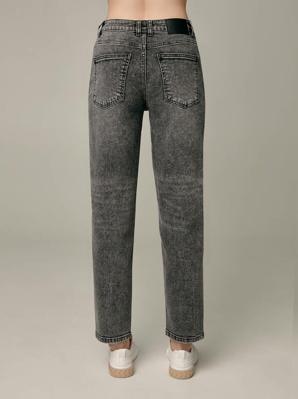 Джинсы mom с высокой посадкой подойдут девушкам с разными типами фигуры: благодаря высокой посадке, прилегающему крою в области бедер и слегка зауженным штанинам модель визуально моделирует силуэт.В процессе оксидной варки деним приобретает особый рисунок, что делает каждые джинсы уникальными.