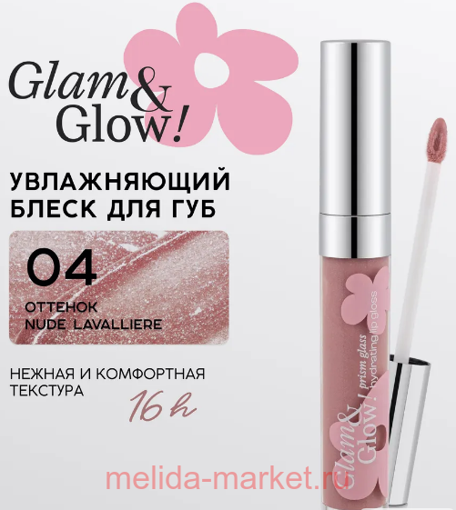 Раскройте всю красоту ваших губ с блеском Glam&Glow! Prism Glass! Этот продукт подчеркнет естественную красоту и сияние ваших губ. Блеск превосходно увлажняет, разглаживает и питает нежную кожу губ. Невесомая текстура равномерно распределяется по поверхности, сглаживая неровности и шелушения. Деликатные сияющие частицы визуально увеличивают объём губ, придавая им чувственность и делая их более привлекательными. Мягкий аппликатор делает нанесение средства комфортным и удобным. Для достижения максимального эффекта, нанесите блеск на чистые губы или поверх вашей любимой помады. Равномерно распределите блеск по всей поверхности, используя аппликатор. Для более интенсивного сияния, нанесите второй слой.