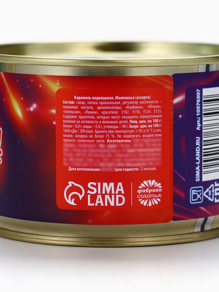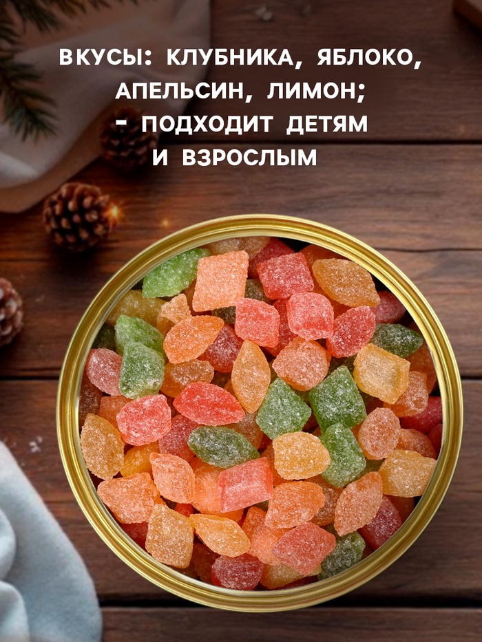 Габариты: 8,7 x 8,7 x 5,7 Страна: Россия В боксе: 105 шт Состав: См. на упаковке Материалы: см. на упаковке Фасовка: по 1 шт Индивидуальная упаковка: Без упаковки Сертификат: ЕАС Набор: Нет Вес нетто, г: 140 Символ года: Символ года 2026 (Лошадь) Тематика праздника: Новый год Вкус: МИКС На палочке: Нет Фиксированная цена: Да Набор волшебных леденцов Монпансье - это не только идеальный подарок для всех, кто любит вкусняшки и хочет добавить в свою жизнь больше волшебства и радости, но и отличное дополнение к вашему праздничному столу. Приятный насыщенный вкус и уникальная магия леденцов Монпансье подарят вам и вашим близким незабываемые моменты, наполненные радостью и волшебством! 1 баночка содержит 140 грамм конфет Состав: сахар белый кристаллический, патока крахмальная, регулятор кислотности - лимонная кислота (Е330), ароматизаторы: "Смородина", "Малина", "Абрикос", "Лимон", "Яблоко", красители (Е102, Е110, Е129). Срок годности: 12 месяцев Комментарии к товару